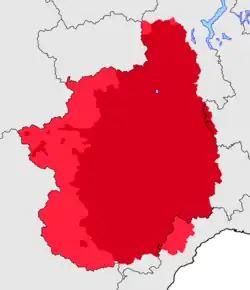 Carte linguistique du piémontaisEn rouge plus clair, les zones où le piémontais est parlé avec l'occitan et l'arpitan, et les zones de transition avec le ligure et le lombard.