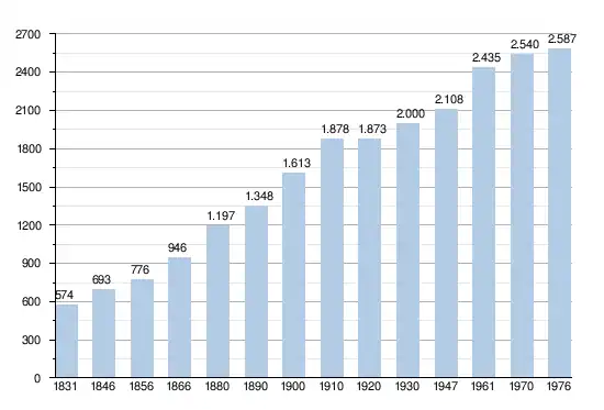 - Sources : INS, Rem. : 1831 jusqu'en 1970 = recensements, 1976 = nombre d'habitants au 31 décembre.