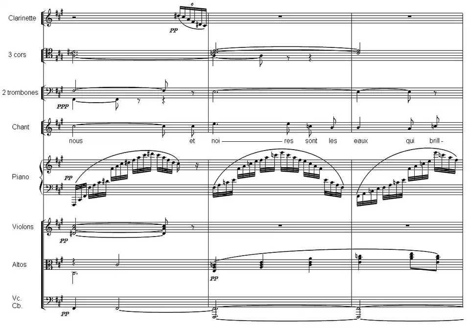 2. Le piano intervient dans l'orchestre, non plus comme soliste et « en-dehors », mais s'incorporant au reste, ainsi que les harpes, le célesta, les bois, les pizzicati, etc. Alors, en général, les parties qu'on écrit pour cet instrument exigent moins la connaissance approfondie de sa technique que l'intuition de ce que peut donner sa sonorité parmi celle des autres instruments ».