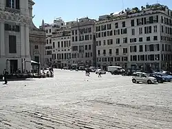 - Tout le côté nord-est de la place est occupé par le Palazzo Ducale, autrefois siège du doge et du gouvernement de la république de Gênes. La façade néoclassique, au centre de laquelle se trouve l'entrée principale du bâtiment, a été construite en 1778 par l'architecte Simone Cantoni après qu'un incendie l'année précédente avait endommagé les étages supérieurs du bâtiment et la façade elle-même. Les ailes latérales, qui entourent la place, ont été modifiées en 1861 par l'ingénieur Ignazio Gardella senior