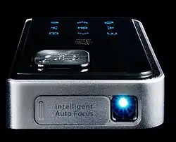 Un picoprojecteur est un vidéoprojecteur miniaturisé qui peut éventuellement être intégré dans un équipement numérique portable (PDA, ordinateur portable, téléphone mobile, récepteur de télévision mobile...)[1].