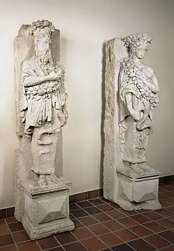 La plupart des sculptures, en bronze, marbre ou pierre, ont été arrachées aux fontaines et aux façades du château. Bien que le successeur de Mansfeld ait estimé que le coût de leur transport excéderait plusieurs fois leur valeur, une cinquante d'entre elles a été envoyée en Espagne. Réparties dans les jardins et les patios des palais royaux, on perd ensuite leur trace, faute d'inventaires, sauf pour les bustes d'empereurs romains en bronze et marbre, dont deux étaient présents à l'exposition de 2007 au Luxembourg[38]. Par contre, la collection d'antiques a été inventoriée avec soin par Wiltheim, qui était aussi archéologue et nous en a laissé des dessins. Il s'agit principalement de stèles votives, plaques inscrites et autres ornements provenant de la région (Arlon en particulier)[20]. Ils ornaient les fabriques du jardin et même le parc à gibier adjacent. Seuls dix d'entre eux seraient partis en Espagne. Ceux restés sur place ont été en partie récupérés par le MNHA Luxembourg[39].