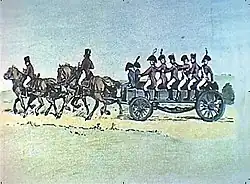 Le principe de "bataillons d'ambulances" sera admis par la hiérarchie militaire. Larrey et Percy, pour mieux servir ces ambulances, obtiennent en 1813 la création d'un corps spécialisé "d'infirmiers de l'avant". Militaires chargés de la relève des blessés, ils utilisaient un brancard démontable dont les deux barres étaient constituées avec leurs lances. Ils étaient de plus équipés de moyens de soins à l'intérieur de leur shako.