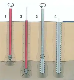 3. inverser le forage et en même temps remplir l'espace avec du béton (et des armatures).