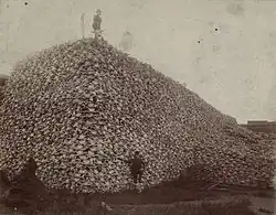 Les os étaient empilés dans des motifs circulaires spécifiques au bord de la rivière. D'après cette coutume, il y avait une notion selon laquelle les bisons ne quitteraient pas la zone qui abritait les restes de leurs proches[6]. Après la colonisation de la prairie par des immigrants blancs, ces ossements de bisons ont été transportés vers l'est jusqu'à la fin du XIXe siècle pour être transformées en engrais, et sous forme de charbon de bois (le noir animal) en tant que pigment (« moelle osseuse ») pour la teinture des textiles et la crème pour chaussures, ainsi que pour la purification et la décoloration du sucre raffiné.