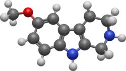 - ↑ Airaksinen, M. M., Huang, J. T., Ho, B. T., Taylor, D., and Walker, K., « The Uptake of 6-Methoxy-1,2,3,4-Tetrahydro-β-carboline and its Effect on 5-Hydroxytryptamine Uptake and Release in Blood Platelets », Acta Pharmacologica et Toxicologica, vol. 43, no 5, , p. 375–380 (PMID 726902, DOI 10.1111/j.1600-0773.1978.tb02281.x)