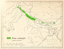 Pinus roxburghii se trouve dans l’Himalaya, du Pakistan au Népal et au Bhoutan, en passant par le Cachemire et le nord de l’Inde.