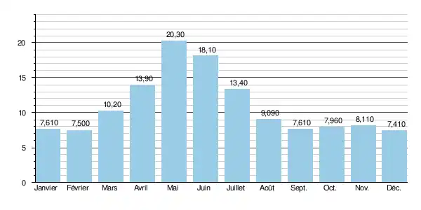 Le débit journalier maximal enregistré à Cier-de-Luchon durant cette période de 12 ans seulement, a été de 85,5 m3/s le 22 juillet 1925. En comparant cette valeur à l'échelle des QJX de la rivière, on constate que cette crue était d'ordre vicennal.