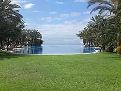 Une piscine à débordement est un type de piscine ou de miroir d'eau conçu pour donner l'illusion que la piscine fait partie à part entière du bassin où elle se trouve. Sur une face avec une vue dégagée sur l'horizon, l'eau débordant du bassin principal est récupérée en contrebas dans une gouttière d'évacuation, les bordures du bassin étant masquées. Jusqu'à un tiers plus cher qu'une piscine traditionnelle, ce type de piscine est souvent associé au luxe.