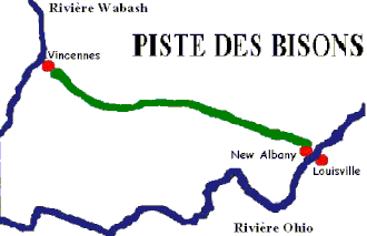La piste des bisons est également connue sous les noms de Vincennes Trace, Louisville Trace, Clarksville Trace, Old Indian Road.