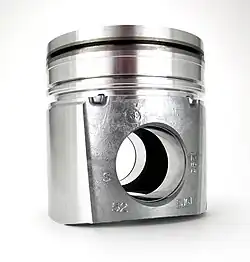 Le piston est l'élément mobile assurant la variation de volume de la chambre de combustion d'un cylindre. Généralement lié à une bielle, il assure la compression des gaz de combustion et subit leur détente, engendrant ainsi un mouvement rotatif du vilebrequin. Lorsque la chambre est ouverte par une soupape, il expulse les gaz brûlés ou aspire le mélange du cycle suivant[23].