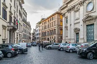 Sur le côté nord de la place se trouve l'église San Carlo ai Catinari, construite entre 1612 et 1620, dont la façade en travertin est l'œuvre de Giovanni Battista Soria en 1638.