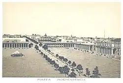 Après la démolition des fortifications de la ville coloniale, suite à l'affirmation de l'indépendance, la ville fortifiée est devenue une ville ouverte[19]. C'est pourquoi, en 1837, la Ciudad Nueva (« Nouvelle Ville ») fut conçue, avec la place d'Indépendance dessinée par l'architecte Carlo Zucchi, inspirée de la Rue de Rivoli à Paris[20]. Au XIXe siècle, la place s'affirma comme un centre de grande importance pour le pays, puisqu'y fut érigé le Palais Estévez, siège du gouvernement uruguayen[21].
