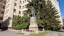 - Une statue monumentale de Lénine — Monument à Lénine — fut érigée sur la place en 1963, mais le elle fut détruite par des manifestants nationalistes[1],[2].