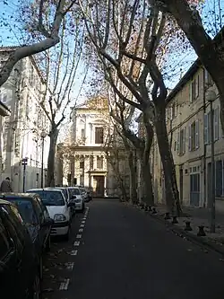Cette place ombragée de platanes s'ouvre sur la rue Philonarde où se trouve la chapelle de la visitation et l'église des Italiens.