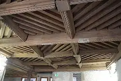 Un plafond « à la fougère » est un plafond caractéristique du Forez. Il est constitué de caissons carrés dans lesquels des solives sont disposées en forme de fougère. Il serait apparu au XVIème siècle, peut-être d'une combinaison entre le plafond à la française et le plafond à caissons, d'origine italienne[1].