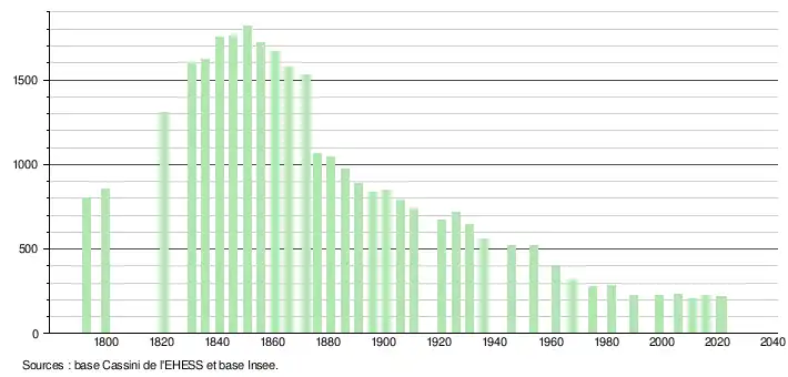 - ↑ Fiches Insee - Populations de référence de la commune pour les années 2006, 2007, 2008, 2009, 2010, 2011, 2012, 2013, 2014, 2015, 2016, 2017, 2018, 2019, 2020, 2021 et 2022.