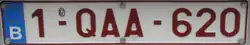 Les nouvelles plaques au format européen (deux formats restent possibles: rectangulaire ou carré) sont de couleur rubis type RAL.3003 sur fond blanc. Il y a 7 caractères au lieu de 6, séparés par des tirets et non plus par des points, et le drapeau européen ainsi que le B y figurent, sur fond bleu, à gauche de la plaque.