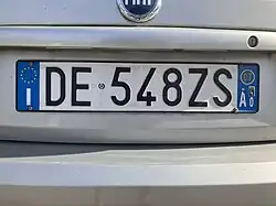 Sur les plaques de la Vallée d'Aoste (AO) et de la province autonome de Bolzano (BZ) figure le blason régional respectif au-dessus de la seconde lettre du sigle, dont la taille est réduite.