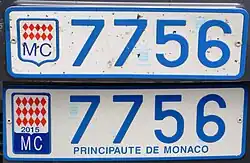 - ↑ « Estampille 2013 : le sigle « MC » également sur la plaque avant des véhicules automobiles », Gouvernement princier,