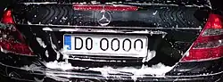- les lettres latines (sauf le Q) peuvent être utilisées (à la différence des plaques d'immatriculation normales) ;