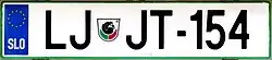 Les plaques slovènes sont composées des trois lettres SLO (Slovenia) suivies de deux lettres et des armoiries, puis de deux lettres et de trois chiffres (en règle générale sur les plaques les plus récentes) pouvant être au nombre de 9[pas clair]. Elles sont écrites en noir sur fond blanc. Les plaques d'immatriculation de Ljubljana, Maribor et Celje, ont souvent une numérotation différente des autres localités.