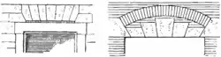 Le nombre de pierres constituant une plate-bande est toujours impair. Les pierres sont des claveaux nommés selon leur emplacement dans la plate-bande : sommier, contre-sommier, contre-clé et clé.