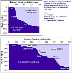 - ↑ (en-US) Leslie R. Sautter, « A Profile of the Southeast U.S. Continental Margin », sur NOAA Ocean Explorer, National Oceanic and Atmospheric Administration (NOAA) (consulté le ).