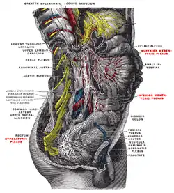 Moitié inférieure du cordon sympathique droit, plexus. (Testut d'après Hirschfeld).