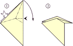 Il consiste à soulever une pointe, la relever et en aplatir les flancs. Il sert notamment à créer la base de l'oiseau à partir de la base préliminaire.