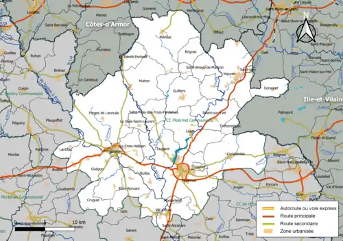 Située dans le nord-est du département du Morbihan, l'intercommunalité Ploërmel Communauté regroupe 30 communes et s'étend sur 804,8 km2[6].