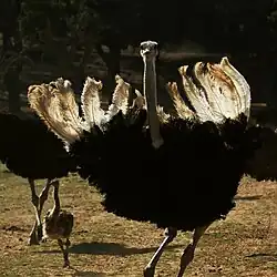 Autruche mâle avec ses plumes blanches visibles.