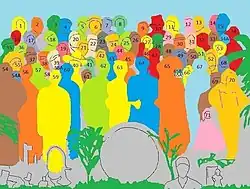 Les personnages identifiés[1] sur la pochette de l'album sont indiqués par un numéro ; toutefois deux d'entre eux ont été effacés.