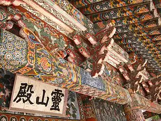 La salle principale, la halle Taeung, a été aussi détruite lors de la guerre de Corée et a été reconstruite en 1976 conformément à l'original de 1765. La pagode Sokka à treize niveaux, trésor national n° 144 datant du XIVe siècle se trouve dans la cour entre la halle Taeung et le pavillon Manse.
