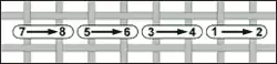 Le point arrière s'effectue en partant de la droite vers la gauche. On pique en arrière de l'endroit d'où l'aiguille vient de sortir. Le pas du point est normalement court, quelques millimètres : plus le pas du point est court plus la couture sera solide.