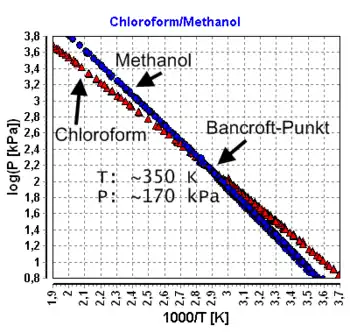 Le comportement azéotropique du mélange s'observe à la température de Bancroft et s'étend à des températures plus ou moins éloignées de celle-ci selon le caractère non idéal plus ou moins prononcé du mélange.