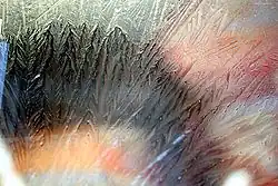 La température du point de givrage est plus grande que celle du point de rosée car la pression de vapeur saturante de la glace est inférieure à celle de l'eau[1]. Quand on connaît le point de rosée, on peut calculer le point de givrage en kelvin ainsi (applicable seulement si la température est sous le point de congélation de 0 °C, soit de 273,15 K) :