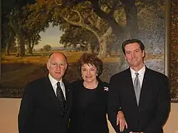 - (en)/(en) Cet article est partiellement ou en totalité issu des articles intitulés en anglais « Governor of California » (voir la liste des auteurs), « List of Lieutenant Governors of California » (voir la liste des auteurs) et en anglais « Politics of California » (voir la liste des auteurs).