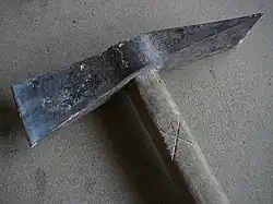 Le manche en bois de frêne se tient à deux mains. Un tranchant est parallèle au manche tandis que l'autre est perpendiculaire. En cela il ne doit pas être confondu avec le marteau taillant. L'outil pèse de 1 à 2 kilos.
