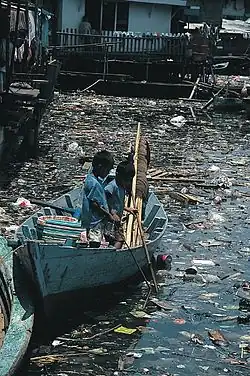 Les fleuves et les rivières constituent une voie d'entrée courante des contaminants dans la mer. Une telle pollution se produit en particulier dans les pays en développement. Les 10 plus grands émetteurs de pollution plastique océanique dans le monde sont, plus ou moins, la Chine, l'Indonésie, les Philippines, le Viêt Nam, le Sri Lanka, la Thaïlande, l'Égypte, la Malaisie, le Nigeria et le Bangladesh[10], en grande partie par les fleuves et rivières Yangzi Jiang, Indus, fleuve Jaune, Hai He, Nil, Gange, Rivière des Perles, Amour, Niger et Mékong, représentant 90 % de tous les plastiques atteignant les océans du monde[11],[12].