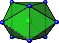 | orthobicoupole hexagonale ou anticuboctaèdre | ![]() | Les atomes dans les métaux à structure de type empilement compact hexagonal | ||