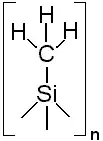 Le poly(méthylsilyne), ou PMSy, est un polymère organosilicié de type polysilyne (en). Il s'agit d'un polymère à réseau aléatoire constitué d'atomes de silicium à hybridation tétraédrique portant chacun un substituant méthyle. À température ambiante, il se présente sous la forme d'une poudre jaune foncé. Il est facilement soluble dans un grand nombre de solvants, comme le tétrahydrofurane (THF), l'éther diéthylique, le toluène, etc.), en formant une suspension colloïdale claire et non visqueuse qui peut être déposée en film ou revêtir divers substrats. La thermolyse de cette substance sous atmosphère d'argon à pression de 1 à 3 atm et température de 200 à 450 °C donne du carbure de silicium SiC[1],[2],[3]. L'intérêt de ce mode de production du SiC est que le polymère peut être obtenu avec différentes géométries (films, fibres, plateaux, etc.) avant d'être converti en céramique de carbure de silicium avec la géométrie désirée.