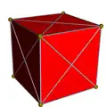 Ayant autant de sommets que de cellules, et autant d'arêtes que de faces, il est son propre dual. Il fait partie du groupe de symétrie . Sa figure de sommet est un cube.