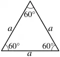 En géométrie euclidienne traditionnelle, tous les triangles équilatéraux sont semblables entre eux et réguliers : leurs trois angles valent 60 degrés.