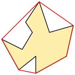 Certaines lignes reliant deux point intérieurs d'un polygone concave croisent ses limites à plus d'une reprise. Certaines diagonales d'un polygone non-convexe vont être partiellement ou totalement à l'extérieur de celui-ci. Certaines lignes latérales (en) d'un polygone de ce type ne peuvent pas séparer celui-ci en deux figures planes, un côté contenant le polygone au complet.