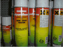 Sous la forme de mousse expansée, les mousses de polyuréthanes sont largement utilisées pour leur qualité d'isolation thermique, leur adhérence sur tout support, leur pouvoir de flottaison, leur capacité à remplir les vides quels qu’ils soient et à permettre des emballages sur mesure, légers et solides. Les mousses vendues en bombe ont une capacité d'expansion de l'ordre de 50 litres de mousse par litre de produit. La masse volumique de la mousse obtenue est de l'ordre de 40 kg m−3.