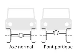 Le pont-portique est une technologie tout-terrain dans laquelle le pont est au dessus du centre de la roue avec un réducteur de boite de vitesses dans le moyeu[1]. Cela donne deux avantages qui accroissent les capacités tout-terrain du véhicule : la garde au sol est augmentée, particulièrement sous le différentiel surbaissé contenant l'axe principal ; et l'engrenage du moyeu permet d'ajuster la puissance et le couple entre la roue et la boite de vitesses.