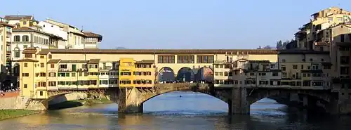 Le Ponte Vecchio, à Florence, fut construit en 1345 pour remplacer l'antique pont romain sur l'Arno. En 1564, Giorgio Vasari restructura le pont sur l'ordre du Grand Duc Ferdinand Ier pour y faire passer le corridor de Vasari (Corridoio Vasariano) reliant le Palazzo Vecchio au Palais Pitti. Les boutiques furent alors réservées aux seuls joailliers et orfèvres.