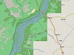 Le pont sur la Sanaga se trouve à deux kilomètres du centre d'Ébebda[1]. Non loin du pont se trouve un chantier d’extraction de sable[2].