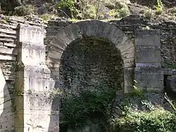 Aujourd'hui seuls demeurent en place: l'amorce de l'arche, le mur de soutien de l'adossement de l'est et une partie de la substructure de la route d'accès constituée par une arcade aveugle[1]. Les parties supérieures, une muraille de pierres sèches et leur parement présente une alternance de dalles de pierres et d'éclats de pierres principalement verts. La voute des arcs et les bords des adossements et des contreforts sont en pierre locale[1].